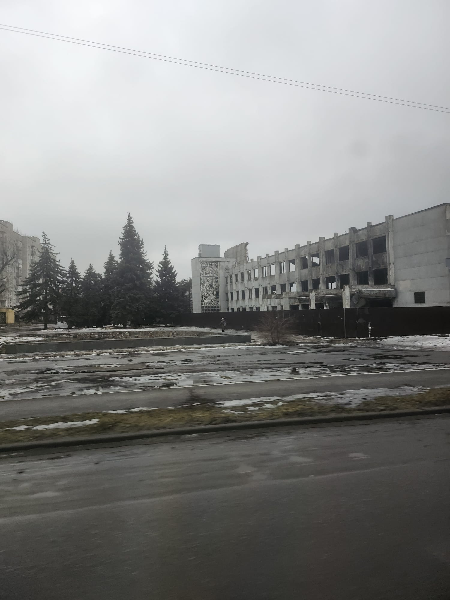 Nous avons rencontré nos camarades du Mouvement Social (Sotsialny Ruh), qui nous ont fait visiter la ville, notamment pour voir le palais de justice détruit par un tir de missile. Notre guide, Sasha, connaissait une personne tuée lors de cette attaque.