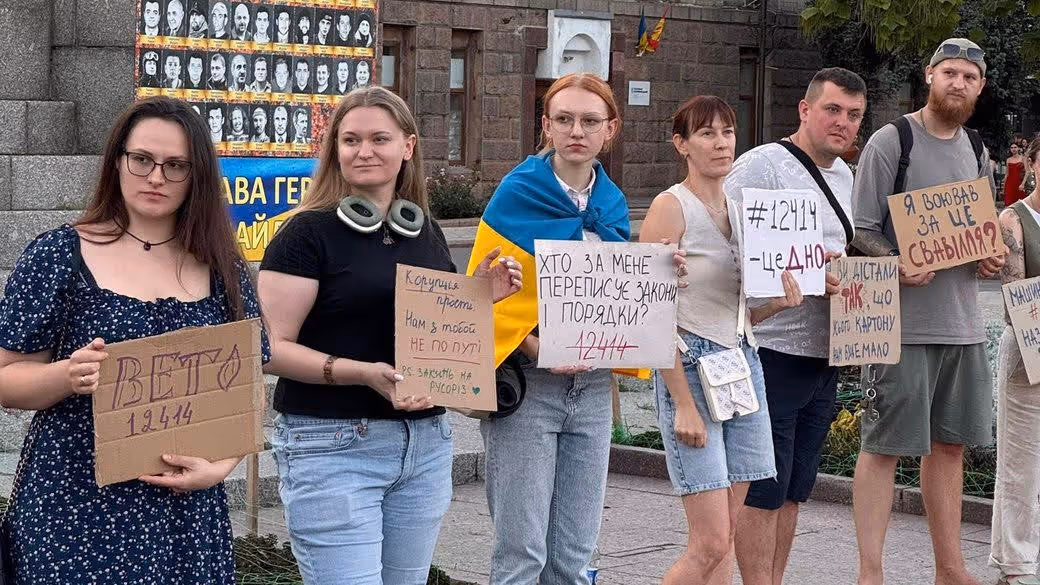 Le 24 juillet, les habitants de Kharkiv ont protesté pour la troisième soirée consécutive contre la loi n° 12414, qui limite les pouvoirs du NABU et du SAPO, malgré le fait que pendant la journée les Russes ont frappé le centre-ville avec un nouveau type de bombe aérienne UMPB-5