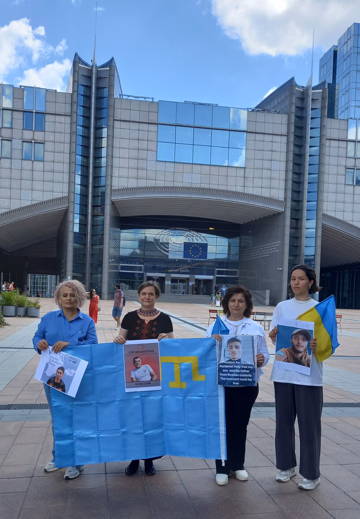 Quelques jours plus tôt, Ayshe Kurtamet avait également organisé un rassemblement près du Parlement européen pour demander une réponse internationale aux répressions massives contre le peuple tatar de Crimée dans la Crimée occupée, ainsi que la libération de son fils et des autres prisonniers politiques détenus par la Russie.